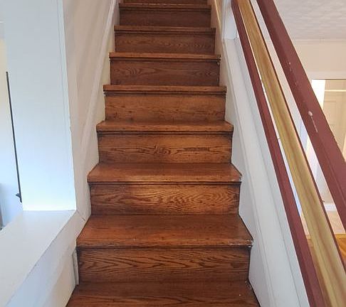 This spacious four bedroom house features hardwood floors, a modern kitchen with stainless steel appliances, and plenty of natural light. The house also has a shared parking lot and laundry facilities in basement