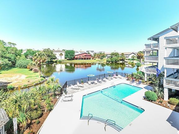 Welcome to one of Surfside Beach's best kept secrets at Hermitage, opportunities to purchase here average only once a year and this top floor 2BR 2BA is two short blocks to the beach with fantastic views overlooking the pool deck and pond from the large private balcony. This home has been continuously updated over the past 7 years from appliances, bathrooms, flooring and cabinets, popcorn ceilings smoothed, to countertops, complete HVAC replacement, and impact resistant doors/windows. Efforts to keep it admirably updated year after year just like a primary residence, along with the large bedrooms make this Hermitage home the perfectly flexible investment as a primary/second, or vacation rental with excellent rental income potential. So close to the beach you can hear the waves crashing from the back deck that is perfect for sunrise coffees or sunset cocktails. One owner closet is located inside the unit and another large storage closet is located on the ground floor. Owner is selling mostly furnished. Located just a short walk to Surfside Drive and plenty of dining, shopping, nightlife, and the brand-new Surfside Beach Pier. This home is a must see so do not delay! It is even getting a fresh interior coat of paint inside for this sale, more pictures to follow. All information and measurements are deemed reliable but not guaranteed, buyer and agent to confirm all.