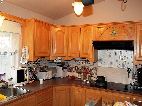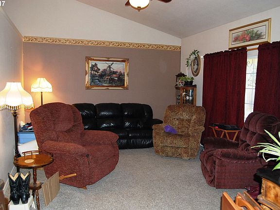 Nice home! Vaulted ceilings, 3 bed, 2 bath. Beautiful kitchen cabinets. Large master opens to covered patio and hot tub. Office in rear of garage. Newer carpet and flooring. Storage shed 12x12 approx. RV space and extra parking. Fenced. Move in process, please excuse the boxes.