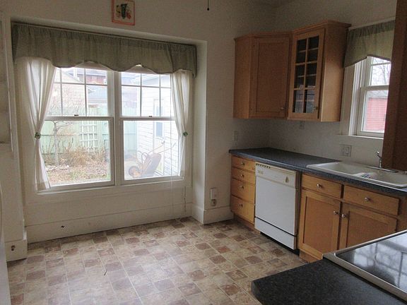 This 2, possibly 3 bedroom, 2 bath home offers great opportunity. Hardwood floors under all carpet on lower level. Each bedroom on the main floor has a bathroom. All appliances remain but not warranted. Semi finished attic offers a 13x27 possible 3rd bedroom with a 9x27 storage area. The attic has been insulated. Bed in attic will remain. Attic just needs your finishing touches. Roof is less than 10 years old. Damage in kitchen ceiling is old, just never repaired. Detached 1 car garage. Small yard that is fenced in. Nice enclosed front porch. Property is being sold as is.