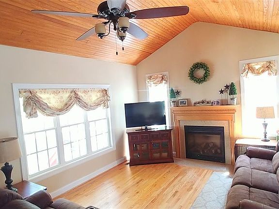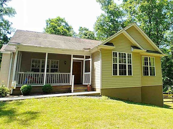 Privately situated on 4+ wooded acres in Fluvanna Co., this custom built home, with many recent improvements, features 9 ft. ceilings, hardwood flooring throughout, a large great room with marble surround gas log fireplace and rustic tongue & groove cathedral ceiling, a bright kitchen with breakfast bar, dining area with sliding glass door to rear deck overlooking fenced back yard. Owner's suite with jetted corner tub, separate shower & 2 vanities. For future expansion, the 1324 sq. ft. unfinished, walkout basement, with washer & dryer, is roughed in for a full bath. Relax on the screened front porch, enjoying the peaceful country setting. Located near Scottsville, this is the affordable, low maintenance home you've been looking for!