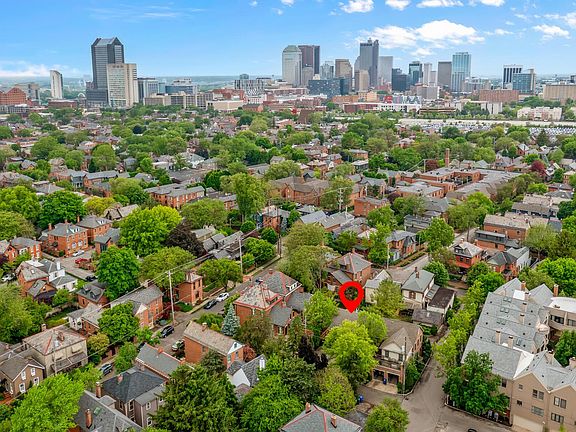 German Village carriage house filled with quintessential Village charm! Nestled on a quiet street within close proximity to top restaurants, boutiques, parks and Downtown Columbus. Enchanting approach to entry door that opens to foyer hall and attached two car garage. Bedroom/lounge and full bath additionally found on entry level. Open and airy main living space features living, dining and fireplace that all flow to the kitchen area. Primary suite also found on the main living level with wall of closet space and ensuite full bath. Third level loft with half bath prefect for an office or flex space. Private rear fenced patio is a retreat in the city. Two additional off-street driveway parking spots. Rare combination of lower maintenance living with a German Village location!
