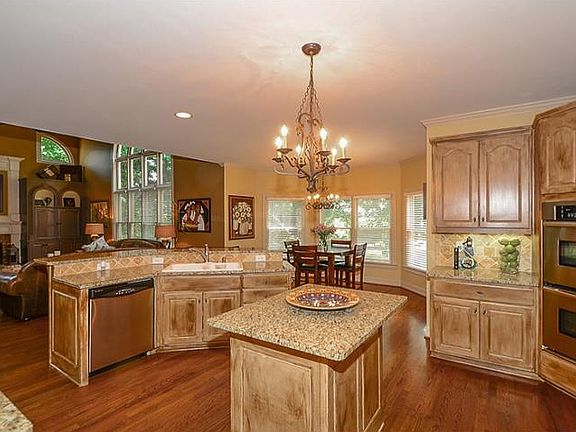 Beautiful, spacious, 3 sided brick home on quiet cul-de-sac street! Open floor plan with 2-story foyer, large granite kitchen w/stainless appliances and wide-open views to great rm w/gas fireplace, bookcases, front/back stairs. Master Ste w/trey ceiling, dble vanity, jacuzzi tub, spacious bedrooms/closets. Finished terrace level w/media room, full bar, family room, full kitchen and bath. Hardwoods thru out first/second floor, newer roof & new AC units. Entertainers paradise with built in stone grill, large patio and gazebo! Award winning schools & low Forsyth Taxes!