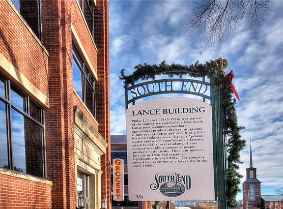 Rare chance for ground floor condo in Charlotte's landmark Lance building. This 1920's factory loft has almost 2,100 square feet in the heart of South End. This property is a historic location for a modern lifestyle. Two walls of floor to ceiling windows looking out to South Boulevard. You'll love the 18" steel beams, wood ceilings, and tons of exposed brick alongside gorgeous warm hardwoods and crown molding. Completely renovated Kitchen and bath with Quartz counters and high end appliances. Freshly painted throughout. This unit also has access to a secured side door from Bland street for super easy access. Also included is one covered parking spot and a separate large storage area.The light rail and "Rail Trail" are just steps away! Walk to dozens of restaurants, galleries and shops.