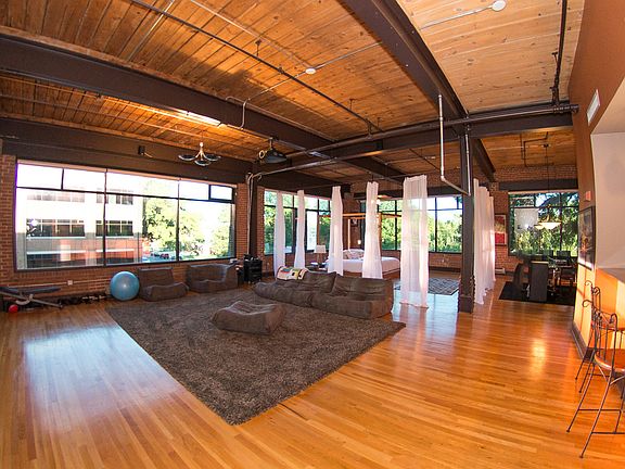 Fantastic Factory South unit - one of the larger ones in the building. Factory South is one of Charlotte's only true warehouse loft projects - just want you'd want in true loft living. Wide open space, soaring ceilings, exposed brick walls and iron work and I-beams throughout, huge windows - and this unit is a corner unit so two walls of them. This 3rd floor unit faces the center lot and over South Boulevard. Unit is approximately 2250 SF. Unit has 1 full bath, huge walk-in closet, comes with a storage unit and 1 assigned covered parking space (larger than most). Owner had one wall smoothed and finished with projector screen quality paint and installed a $3500 projector - great media! All of this stays with the sale. Zoned for live / work so can be used as residential, commercial or both.?