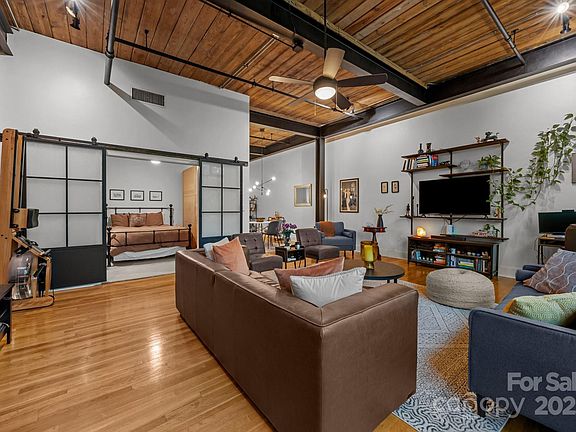 Desirable South End condo on the top floor of historic Factory South. High wood ceilings with metal beams and historic brick walls make this unit a stunner. On light rail and rail trail. Walkable to Uptown Charlotte and the bars and restaurants of South End. Convenient elevator access to your assigned, covered, and gated parking spot. Nicely maintained and updated. Smart thermostat. Additional assigned storage locker included down the hall. Fiber internet installed and available as an option.