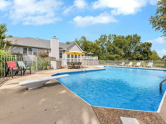 Reduced for a quick sale. Absolutely stunning 5 bed, 4 bath atrium RANCH w/4600+ sq. ft. finished in one of Columbia's most desirable subdivisions. This home is on the North end of town for an easy commute just 4.5 miles from Jefferson Barracks Bridge. This home is on easily one of the best lots in town with 1.45 acres of that includes big salt water pool w/9ft deep end, illuminated koi pond with waterfall, direct access to walking/biking trail &park like view, highlighted by gorgeous landscape lighting. Inside, fine architectural details include formal foyer, arched doorways, varied height ceilings, vaults, formal dining, eat in kitchen w/island and walk out to private deck. Main floor laundry just off 3+ car garage. Huge master has perfect back yard views, new carpet & spacious ensuite w/very large walk in + bedroom being used as glam closet. Walk up lower level freshly remodeled w/custom bar area, rec room, home theater, full bath, bedroom & office (5th bed). Roof is 10 years old