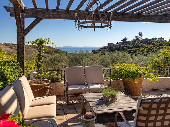 Alluringly Summerland appointed home on nearly four and one-half acres with panoramic ocean, island & mountain views. As you approach the secluded estate, a feeling of complete remoteness settles over you. The moment you drive down the long driveway & preview the hacienda, you'll see the breathtaking views - it's like no other feeling in the world; your eyes gaze from one dazzling view to the next. A blend of Mediterranean style and classic Santa Barbara architecture with wood beam ceilings, arcades, red-tile roofs and courtyards. The property was built originally in 1993 - the main house encompasses three bedrooms and three bathrooms. It was elegantly remodeled between 2005 - 2008 which is when the two bedroom one bath guest house was constructed. Total sq-ft is approx 3897.