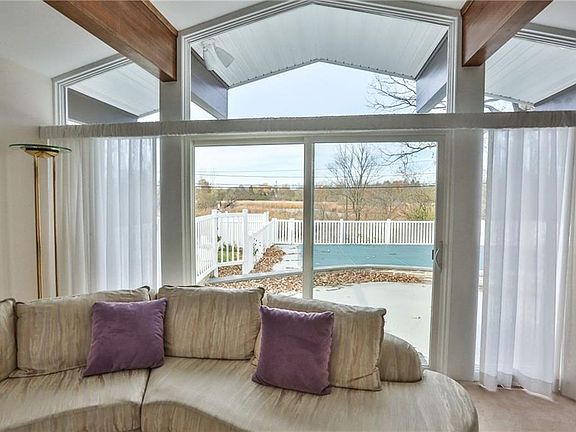 Welcome to this beautiful home, lovingly cared for in every respect by original owners. This house is perfect in every way. Updated and mechanically..Entryway has hardwood floors. step down living room, walls of glass, beamed ceiling. Large dining area. Chef's kitchen with granite countertops and island. Walnut paneled family room with cathedral ceiling, gas fireplace (2 sided). Bar room with wet bar. Master bdrm plus 4 others have sliding doors to patio and pool. (liner 1 yr) Solar heat for pool. Water purification system. fin LL. sprinkler system, many new windows, new carpet... Gorgeous, private lot overlooking huge pond and plantings. Circular drive. So many possibilities with this home. Great location, near schools, shopping, Strong and U of R.