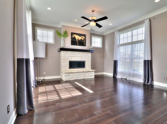 Originally Built by McGuire Custom Homes and offers spectacular design and custom features. You will enjoy the exterior design and curb appeal. Features Living room with cathedral ceiling and stone fireplace. This home has a great floor plan for entertaining. The kitchen has center island with beautiful marble counter tops, as well as a marble tile backsplash. Main floor has a bonus bedroom that can also be used as office or den. Upstairs master bedroom has a large walk thru closet that leads to convenient upstairs laundry room. Master bath has Corian tops and Travertine floor tiles. Other bedrooms are large sized. The basement is finished with a family room and a full bath as well as potential 5th bedroom space. You will appreciate the upgraded features in this move in ready home. Garage extra depth on one side of 20 ft. for awesome storage. Kitchen appliances and washer/dryer included, making this a great value home with beautiful features.