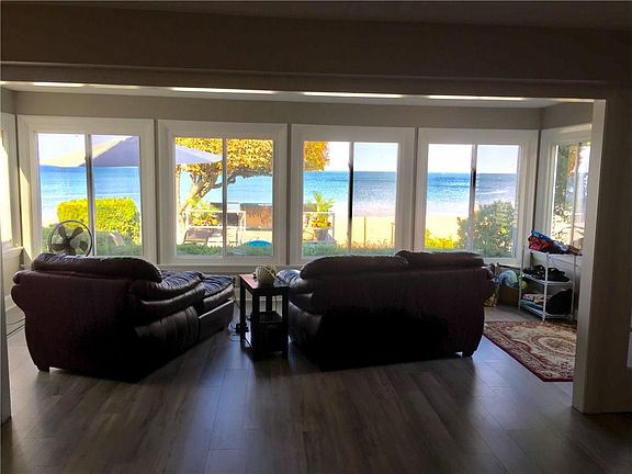 Come home to relax on your beautiful beach and enjoy gorgeous sunsets. Updated and remodeled with hardwood floors and freshly painted throughout. New AC installed 2018. This waterfront home offers 4 bedrooms with closets. There is also a sleeping porch or den with beautiful built-in oak bookcases overlooking the lake. Light maple kitchen with all appliances included. Combination dining and living room and a first floor laundry as well. You will also find a boat house that was just fully remodeled inside with a top deck for lounging. Plenty of outdoor parking as well as a 3 car garage.