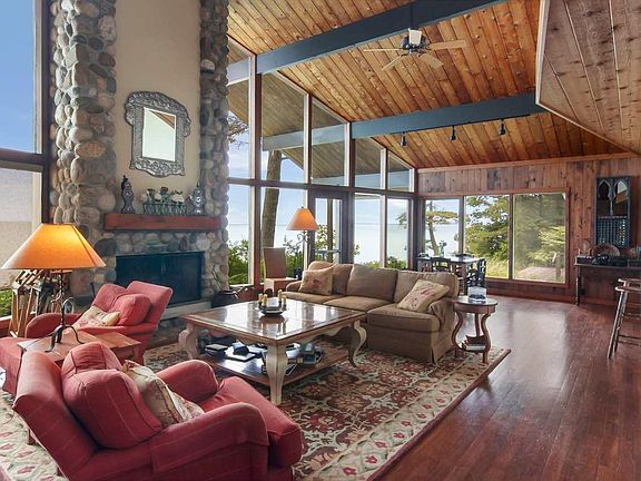 Lovely year around home on Lake Michigan within Crystal Downs Country Club. Mature woods and beautiful landscaping. Screened porch, field stone fire place, private primary bedrrom suite also has a fieldstone fireplace. A delightful loft area adds an additional sleeping room. Wonderful views of Sleeping Bear Dunes and Manitou islands. Membership in Crystal Downs Country Club is not guaranteed with the purchase of this property. Membership amenities include golf on the classic MacKenzie course, tennis court complex, Crystal Lake beach and clubhouse privileges.