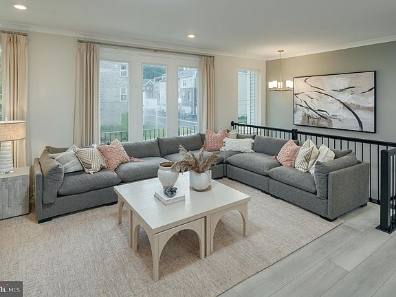 Under construction – ready for November move-in. Welcome to The Fairways at Woodholme! This Easton townhome by Lennar has four finished levels and offers a two-car garage on the front of the home. With 3,000+ sq. ft of conditioned living space, this home features dual-zone climate control and offers three-bedrooms, three full-bathrooms and two-half baths. The open-concept main floor is highlighted by a gourmet kitchen with gray cabinets with a matching exhaust hood, double wall-ovens, and a 36” five-burner gas cooktop for the discerning chef. Iced White Quartz countertops grace the long center island with over 14’ of countertop space and plenty of room for guest seating. Tucked away off the dining room is a built-in beverage bar, a HUGE walk-in pantry and a private powder room. The bedroom level offers generously sized rooms, a 17’ x 12’ owners’ suite with a private en-suite bathroom featuring double sinks and a large step in frameless shower stall with built-in seating. The walk-in closet has room for all of your clothes with nearly 30’ of hanging space. The included front-loading washer & dryer is located on the bedroom level, avoiding the need to haul laundry up and down the stairs constantly. Walking up the stairs to the fourth floor reveals a private bonus room with ½ bath and access to the rooftop terrace that offers over 265 sq. ft. of outdoor living space with a view over the rear yard and the trees across the street.