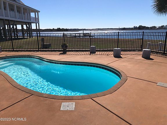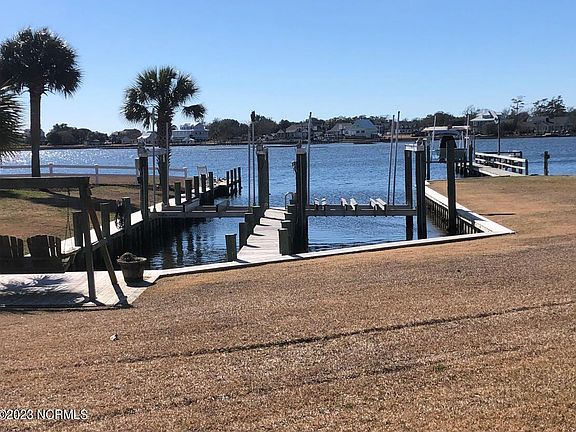 Escape to coastal living at its finest in this stunning waterfront home situated in the sought-after community of Cape Carteret. This beautifully updated 3-bedroom, 2-bathroom home offers breathtaking water views from every room, creating a serene and peaceful ambiance. Upon entering the home, you'll be welcomed by an open floor plan that boasts abundant natural light, bead board ceilings, and luxury vinyl plank floors throughout the main living area. The spacious living room is anchored by a cozy state of the art fireplace, perfect for relaxing and unwinding after a long day. The updated kitchen features stainless steel appliances, granite countertops, and ample cabinetry, making it a chef's dream. The primary bedroom suite is a true retreat, complete with a large walk-in closet and an en-suite bathroom. Two additional generously sized bedrooms share a hall bathroom, making this home perfect for hosting family and friends. Step outside onto the deck and take in the awe-inspiring water views. The backyard offers a private oasis with lush landscaping and a dock with two boat lifts, ideal for boating and fishing. Stunning fully furnished apartment suite located on the first floor featuring ceramic tile floors, full kitchen, and full bath that opens to the pool patio. Large storage shed features a full-size garage door and front porch. Large .88-acre lot allows the lot to be divided into two separate parcels. One parcel with shed could be sold separately as waterfront lot making this an attractive investment. Located just minutes away from local shops and restaurants, this home provides the best of coastal living. Don't miss out on the opportunity to own this exquisite waterfront property. Schedule a showing today!