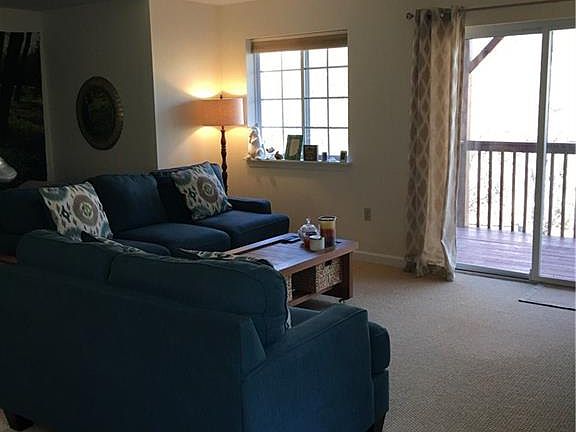 Light, bright and beautiful, this 1 bedroom, 1 bath second floor end unit at Jordan Commons is picture perfect and move-in ready. The spacious living room has a slider to the rear deck which overlooks the woods and pond. Formal dining room with a large side facing window and a spacious bedroom with a sun filled front facing window, walk-in closet and bathroom access. This lovingly maintained unit has many updates to include a new heating/cooling system, water heater, carpet, paint and custom blinds throughout and a new garbage disposal. The new full size washer and dryer are also included. This complex is FHA/VA approved and features an outdoor pool, walking trails and low HOA fees. Conveniently located with easy access to highways, beaches, schools, theaters, shopping and so much more. A wonderful place to call home.