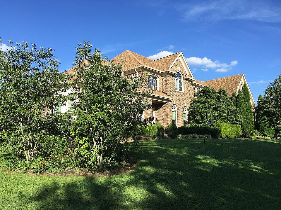beautifully landscaped with perennial flower beds and large trees for privacy 1/2 acre pond with 2 waterfalls Blackboard fence around entire property