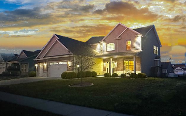 Tremendous opportunity to be the proud, second owner of this magnificent & meticulous custom home. Sitting on an oversized lot, this 2017 custom built home has great curb appeal...with stunning stone & brick masonry, a large covered front porch, professional landscaping & a beautiful front door, that has frosted/etched glass windows. No detail overlooked, with only the highest quality features, fixtures, selections & amenities. Fantastic floor plan with over 4,000 sqft, 4 spacious bedrooms & 4 FULL baths. Impressive foyer with soaring, 2 story ceilings, eye-catching crystal chandelier & full view of the grand open staircase with a balcony overlooking the entry. Formal "flex room" with French doors off the entry. 9 ft ceilings, acres of darker hardwood flooring & miles of crown molding above all windows & doors. Big bright living room featuring an attractive floor to ceiling, modern tiled fireplace & a triple bank of windows. Popular open layout to the oversized eating area, that has a built in cabinetry/desk area & & sliding glass door to access the patio. Dream kitchen with loads of Amish built, ceiling height, dark Cherry cabinetry, the highest with glass inserts. Tons of gorgeous granite counter space & long center island. (room for 4 barstools) Mudroom is conveniently located between the garage & kitchen 7 has another coat closet & built-in lockers/bench/hangers (also in dark Cherry) & FIRST FLOOR FULL BATH! Upgraded light fixtures, granite tops and matching vanities, beautiful ceiling fans with recessed lighting & custom blinds in all rooms.. The private "South wing" is reserved... Escape to the spacious master suite to enjoy your luxurious en-suite retreat! This spacious space offers special features... a tray ceiling and recessed cove lighting, a bank of large windows for abundant natural light & big walk in closet. Step into the spa like bath that has two separate vanities and tall cabinet in the center. A custom tiled stand up shower & a step up 6ft long, extra deep soaker/whirlpool tub. Second floor laundry with cherry cabinetry & matching vanity/stainless sink. FULL, FINISHED BASEMENT (also 9ft.ceilings)has big r 2ND FULL KITCHEN, a generous 4th bedroom, 4th full bathroom, w/home theater setup and ENORMOUS STORAGE ROOM. Well built, efficient, comfortable home with dual zoned, high eff. HVAC. system keeping all levels evenly controlled. Tankless Continuous Water Heater, Built in LAN connectivity available to all rooms for high speed internet. Passive Radon Mitigation System. Extra wide and long 4 bay garage with 20ft long, 2 story high storage & carpenter built, sturdy shelving. Large mechanical room and storage room under the stairs. Built-in central vacuum system in place and ready for setup. Boarder Magic concrete landscape edging around the house. Lovely & established Perineal plantings for low maintenance gravel landscaping