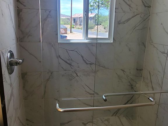 Beautiful brand-new showerBrand new hvacMature landscaping surrounds propertyKitchen breakfast bar areaBuilt-in shelvesOutside storage unit