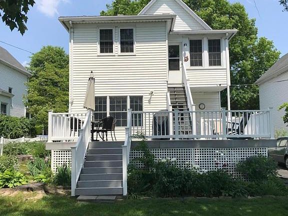 Must see move in ready property on quiet street,ultra modern custom kitchen,dinning rm,living rm,& sun room with gas fire place with modern full bath on first floor. second floor, full bath modern shower no tub., three bdrms, kitchen on sec floor presently office by seller, could be additional bdrm. Exter composite deck, with one car detached garage, white picket fencing with flower& veg garden