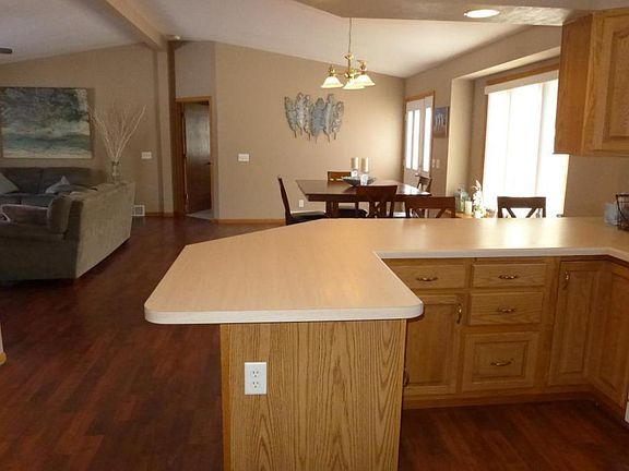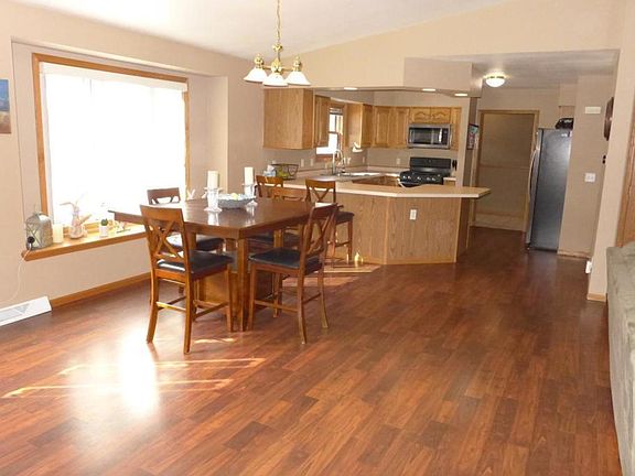 Spacious 1 Level living on 1.79 Acre lot plus finished lower level walk-out and oversized 2 car insulated attached garage with concrete driveway! Vaulted open floor plan features laminate wood flooring, gas fireplace with brick surround and patio door to deck overlooking private level backyard! Generously sized bedrooms with two on each floor; master boasts a large walk-in closet and private full bath with double sink vanity, separate shower and big corner tub with tile surround! Second full bath and laundry/closet area with wash tub sink rounds out the main floor. Spread out in the lower level family room with tiled area roughed in for potential wet bar, rec room/exercise room and huge 3/4 bath with tiled floor! Lots of storage space in lower level! Enjoy small town living with this efficient 4BR/3BA on dead end street!