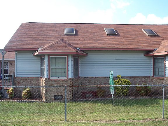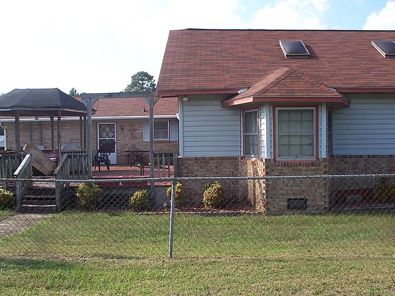 Three bedroom, two full baths (one has Whirlpool tub) and 1/2 bath adjoining huge flex/rec room at back. Living room, den or library, dining, laundry, huge deck, outbuilding, on 143'x175' lot. Appraisal shows 2580 sq.ft. Harnett County GIS shows 2795 sq.ft. Electric heat pump in part of home, gas pack in front part of home. Parking pad in addition to double carport.