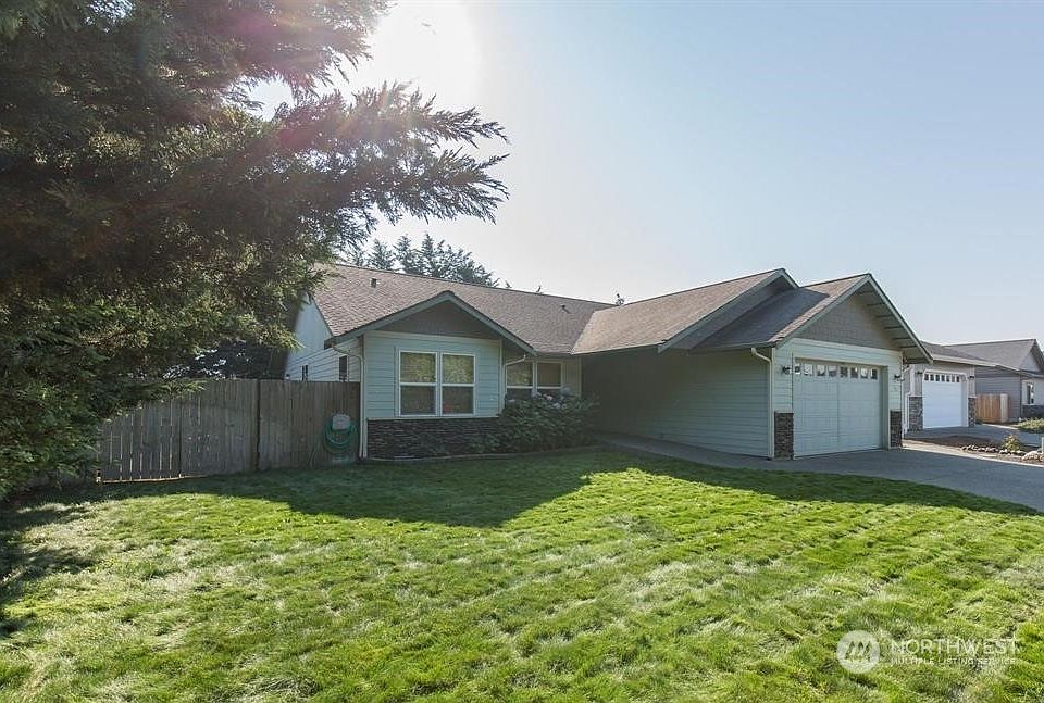 Single story 3/2 home in desirable Eagle Mountain estates close to all Sequim amenities. A wall of windows facing south provides the great room with abundant natural light. Guest bedrooms separate from primary suite for additional privacy. Seller replaced all appliances in the kitchen which also includes an island, pantry and pull-out shelving. Spacious primary bedroom with a french door out to the back yard, a private toilet/ shower, soaking tub and walk in closet. Easy access into the home with a concrete ramp. Laundry room has loads of upper cabinets, a utility sink, broom closet and countertop space. Fenced back yard for your furry friends. Efficient heating/ cooling with heat pump. Low maintenance hardi plank siding.