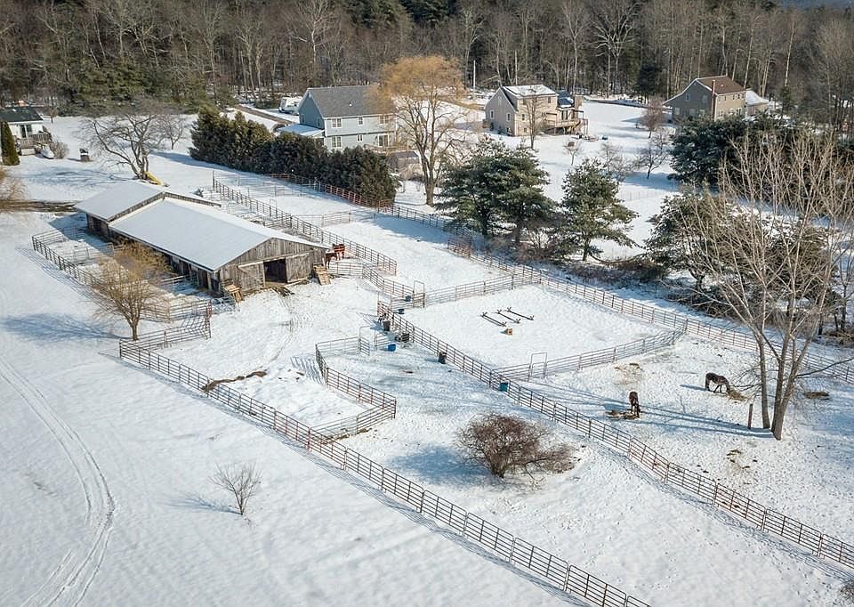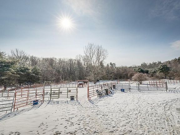 Introducing Fancy Farms, a one of a kind gentleman's farm/equestrian home on 6+ acres. Currently 6 boarders for instant income! The horse or animal enthusiast will appreciate the 12' center aisle barn with 11 (12x12) in/out stalls, tack room, grain room, hay storage for 450 bales, water and electric. Large outdoor riding ring and plenty of open pasture for grazing, livestock, gardening or orchards and includes portable metal fence panels providing total flexibility in paddock configuration. Direct access across the street to over 2000 acres of Conservation land for trail riding, hiking, snowshoeing, cross country skiing, etc. The inside of this multi-level home, boasts a spacious living room with floor-to-ceiling brick fireplace and sun filled bay window on the 1st floor. The MBR with it's own en-suite, plus two other bedrooms and a full bath reside on the 2nd floor. The ground level includes a bonus room/office, ½ bath and access to the attached 2-car garage. New Roof Feb 2018!