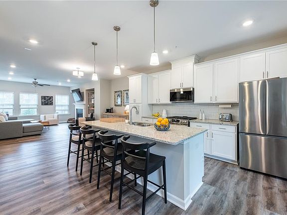 Beautiful 4 bedroom 3 1/2 bath three story townhome available for immediate move in! This community is located less than a mile from downtown Woodstock's shopping , restaurants and entertainment.. First level is your 2 car garage , mud room , full bath and bedroom. On the second floor, an open design seamlessly melds the living room, dining room and kitchen, which opens out to the deck. Three full spacious rooms upstairs featuring a large primary bedroom with sitting room. The master bath features a double vanity, large tiled shower, and a large walk-in closet.