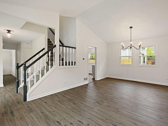 Bright and cheery two-story in a private, friendly neighborhood on a tree-lined cul-de-sac! Freshly renovated...everything is NEW and move-in ready! Luxury vinyl throughout the entire main floor! Expanded kitchen with additional cabinetry, sparkling quartz counters, KitchenAid range and dishwasher, and a brand-new stainless steel French-door fridge. The kitchen opens to the family room with cozy fireplace and slider to fenced backyard. Vaulted living and dining rooms with great views of the front and back yards, too! Upstairs, you'll find brand new carpet and four bedrooms all with generous closet space. The primary suite will NOT disappoint! Brand new bathroom top to bottom: double-sink solid wood vanity with tilt-out drawers, drawer organizers, and integrated USB/outlets, quartz counters, walk-in shower with custom shower glass! Double walk-in closets plus a separate shoe/accessory/linen closet! Second bedroom opens to hall bath: freshly renovated with quartz counters, new fixtures, and wood-look ceramic flooring. Full finished daylight basement with the brand new carpet, the cutest playhouse ever plus a storage/workshop! Newer siding, windows, roof, front door, garage door! All this on over a quarter-acre lot with a portion fenced off--perfect for keeping an eye on the little ones or your pets. Entertaining? There's plenty of space to add a volleyball net or a game of bags! HUGE 2.5 car garage with tons of built-in shelving and access door to backyard. 1/2 mile from downtown Algonquin, minutes to Fox River! New within ~ 5 years: roof, siding, double-hung windows, AC, slider. Fireplace as-is (never used). *PLEASE NOTE: the fence is well within the boundaries of the lot and could be expanded if the buyer would prefer a larger fenced area. Owner is an IL licensed realtor.