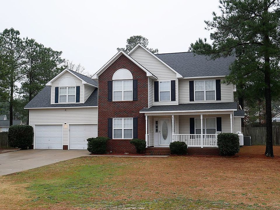 -Quiet, friendly neighborhood that is very close to grocery stores, shopping, and 10 minutes from Fort Bragg. Living room and Kitchen are open to each other. Upstairs has the master bedroom as well as 2 other bedrooms and a huge bonus room. The bonus room is equipped with an entertainment system which has ceiling mounted surround speakers as well as a wet bar and 2 nice size storage areas. Room inside the bonus room can be used as a 4th bedroom or an office. Refrigerator and dishwasher are a less than 2 years old. The AC unit and heat exchanger was replaced 2 years ago. Roof was replaced on 2/20/19. Quartz countertops and tile backsplash were recently installed in the kitchen. The master bathroom was recently renovated with a tile shower and tile flooring and the upstairs bathroom was tiled as well. The above ground pool has been converted to salt water and has a wrap around deck. It is wonderful in the summer to cool off or for kids to have a blast in their spare time. The huge fenced backyard is perfect for pets that love to exercise. There is also a durable vinyl shed that will never rust to store your yard and pool equipment.