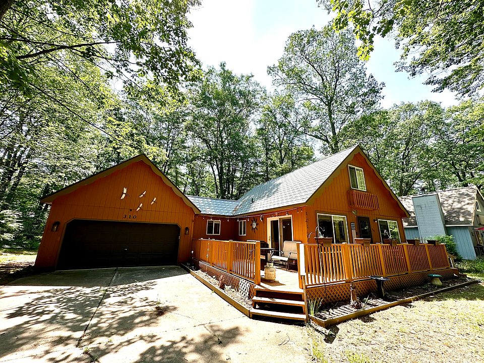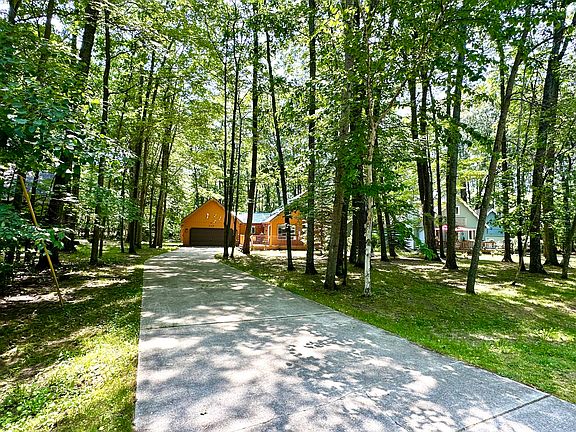 Lovely 3-bedroom chalet on a .55 acre parcel in the wooded neighborhood of Higgins Lake Forest Estates, just a few minutes from the South State Park. This gorgeous property has plenty of room to build the pole barn of your dreams! The interior has been updated with fresh paint, new flooring upstairs, two-panel interior doors, bathroom tile & vanity, all new appliances including front load washer/dryer. On the main floor, you'll find the baseboard trim that has been removed for new flooring. Instead of finishing, the sellers are sweetening the deal by offering a flooring credit so you can make your vision a reality. Everything else has been done for you. The heating system has been converted to more efficient natural gas. The hot water tank and pressure tank are newer as well. The metal roof and furnace are both approx. 8 years old. TWO garages, one attached and the other detached, are 20x20 ea. The property extends from Dante to Wendy Lane. Higgins Lake Forest Estates is ideally located between I75 & 27 close to ORV and hiking/biking trails, Higgins & Houghton Lakes, and an easy drive to TC, Petoskey, and the Mac Bridge! Buyers also have the option to purchase furniture.