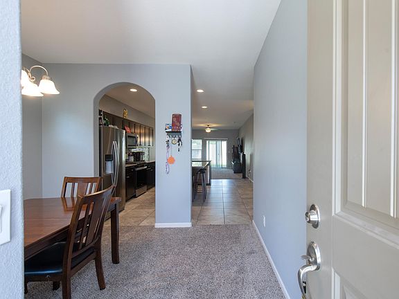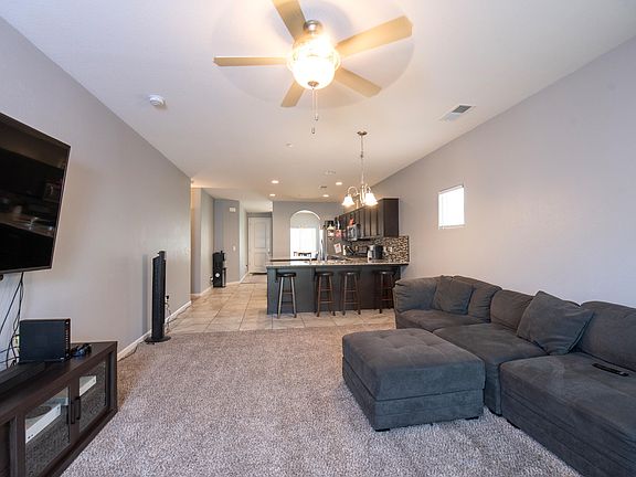 As you exit the backyard you'll find the living area with a sliding patio door. Front front and back yard have been nicely landscaped. Both front and backyard have a covered patio.