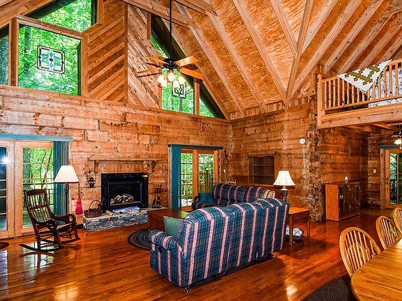 Absolutely stunning architecture in this mountain chalet, in the heart of Townsend, quiet side of the Smokies, with your own park setting outside. Incredible cross beam and vault ceilings inside w/ so many multi-use spaces. Great room completely open for entertaining or resting retreats. An abundance of craftsmanship is on display in this log & western cedar home. Master on main w/ dual vanity, and huge walk-in closet. Sun room that has the feel of being in nature. Furniture negotiable. Upstairs loft features a sleeping area, office area, craft area, separate living quarters downstairs, along with ample storage and over sized 2 car garage. Circular drive for the wrap around decks on one level, expand the usable space of this already expansive chalet. So many features and so much space to share with family and friends. Your mountain retreat is calling you.