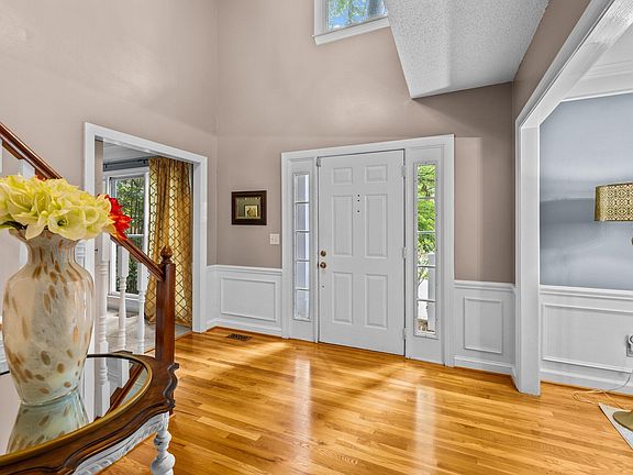 Nestled under a canopy of hardwoods, the traditional home exudes character and charm! Located in the heart of Cary and convenient to everything. Step inside to an elegant 2-story foyer offering hardwood floors, crown molding, chair-rail and picture frame wainscoting. The kitchen offers a casual dining area, updated lighting, ceiling fan, crown molding, chair-rail, tile flooring, natural stained raised panel cabinets with crown trim, granite countertops, and a center island. A large window over the sink looks out onto the private backyard. Stainless steel appliances include a gas range/oven, built-in microwave and dishwasher. The family room just off the kitchen features a cozy fireplace with custom painted mantel and decorative wall trim above. A large formal dining room is adorned with custom features such as, crown molding, designer lighting, chair-rail molding and wainscoting. A formal living room off the foyer with sliding barn door makes a great place to retreat to after a nice meal with friends and family. A home office is situated just off the formal living area. The 2nd floor owners retreat features hardwood floors, vaulted ceilings and crown molding. The adjoining owner's bath offers a furniture style vanity with dual sinks, bronze faucets and fixtures, claw foot soaking tub, separate shower with tile surround, and a walk-in closet with custom wood shelving. Spacious secondary bedrooms and a bonus room complete the upper level. Outside, a large deck and paver walkways and patio beckon you to come enjoy the outdoors.