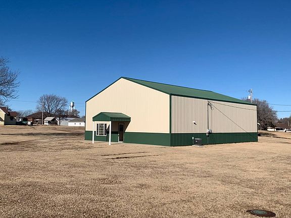 Located just two blocks north of US Highway 54 and next to one of the busiest bypass intersections in South Central Kansas, this commercial building located at 310 E 1st in Cunningham, Kansas, has just become available. The property features a 48ft x 60ft steel-sided, post-frame building on a large 150ft x 150ft lot. There is a 14ft x 18ft electric overhead door and the side walls measure 16ft tall. The front portion of the building is nicely finished office space measuring 20ft x 48ft and has central heat and air. The large office room is wired with phone, internet and electrical outlets for four separate desks. Additionally, there is a conference area divided by a 4ft partition wall. A convenient kitchenette, two half-baths and two storage closets are present as well. The 40ft x 48ft shop area is set up to use with several 110V outlets, two separate 220V outlets and an additional overhead storage area over the offices. As stated, this property is just up the road from US Highway 54, and one of the newest, largest and nicest corporate truck stops in Southern Kansas, as well as a massive, state-of-the-art grain handling facility. The opportunities for a quality built and finished property such as this are endless. This is an agent-owned listing.