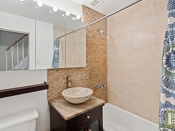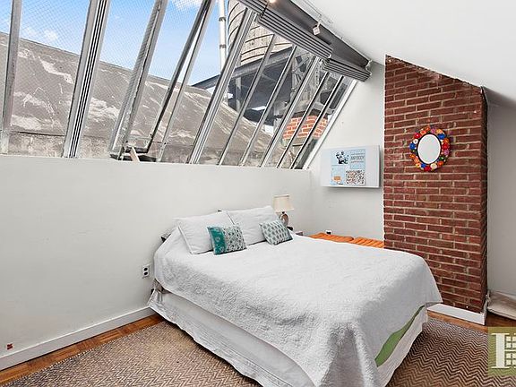 PENTHOUSE GRAMERCY LOFT This unique, open and airy one bedroom, one bath apartment features soaring ceilings over 15' ft high. Large south facing windows allow for an abundance of natural light, and gorgeous evening views of the Manhattan Bridge . The renovated open california kitchen is outfitted with stainless steel appliances, granite countertops, and tons of cabinet space. The bedroom, located upstairs, is quite spacious, allowing for a king sized bed, plus an armoir, dresser and desk! Plenty of natural light floods this room as the ceiling is lined with skylights; late sleepers not to worry- brand new blackout blinds have been installed to keep that sunlight out when necessary. Hardwood floors throughout, good closet space, plus an additional 250 SQUARE CUBIC FEET of STORAGE SPACE in unit. Apartment located in the back of the building, so it is nice and quiet! Laundry in basement, live-in super, communal roofdeck with grill and beautiful roses maintained by the co-op's porters. Don't miss out on this great apartment!! Move in July 7th