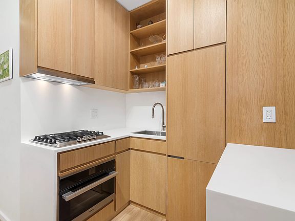 Exquisitely renovated with unparalleled craftsmanship, this modern CONDOP loft studio is in perfect turn-key condition for immediate move in. Featuring 11" ceilings, solid wide-plank white oak floors, oversized windows, custom white oak cabinetry, and corian counter tops, this sunlit home is light and airy, with ample storage thoughtfully designed for easy living. The open kitchen is minimal in its design and has solid white oak cabinetry, Miele steam convection oven, Bosch cooktop, Liebherr refrigerator and a custom-built waterfall breakfast bar. Before entering into the bathroom you will walk-through a fully outfitted hallway of custom floor-to-ceiling white oak closets that form a perfectly organized stowaway for clothing and household items. Clad in oak paneling, the zen bathroom features a deep Japanese soaking tub with rain shower head, sleek vanity, recessed lighting, and the finest mosaic marble tiling, replete with hidden storage for toiletries. A perfect blank canvas filled with inspiration, this elegant home offers the perfect live/work opportunity you have been looking for. Unlimited subletting after 1 year of ownership! Maintenance includes cable and internet. The Foundry is a pre-war conversion that is a flexible CONDOP where gifting, parental purchasing and pied-a-terres are all welcome on a case by case basis. Amenities include a furnished roof deck, common laundry, bike room, storage, video intercom and live-in super. 2% buyer paid flip tax.