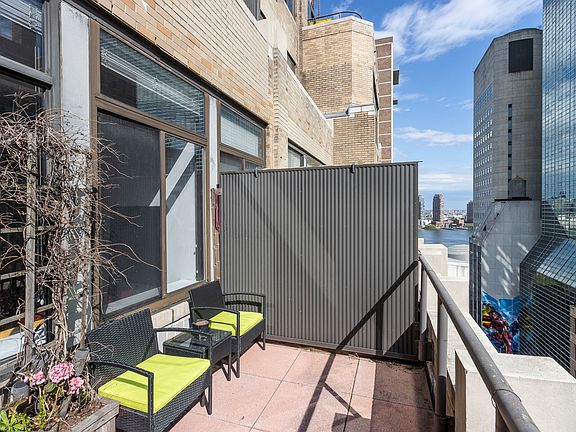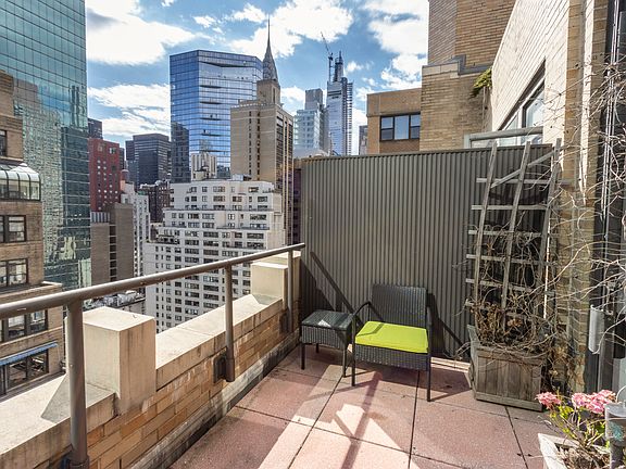 Not your typical studio! Welcome to this spacious, open loft with terrace on the 15th floor of Turtle Bay Towers, a luxury condop (coop with condo rules) located at 310 East 46th Street! Oversized windows offer a steady stream of southern light and open to a wonderful 11'8 x 7'3" planted terrace with views of the the East River, the Chrysler Building and Midtown. Nine feet of closets line the entry, providing great storage for the apartment. Soaring high ceilings offer potential for lofting bed. Designer Italian furniture included (sleeps 4)! Kitchen has dishwasher, built-in microwave, stone floors, granite countertops, lots of cabinets and an extra set of display shelves. Low maintenance of $1370 includes heat, hot water and cooking gas, and 6 months of pre-paid maintenance are included with the sale! Located between the United Nations and Grand Central Station, Turtle Bay Towers is high-security building is staffed by a 24-hour doorman as well as a live-in super. Laundry is conveniently located on the 15th floor, and the building has an attached parking garage, as well as a roof deck, bike room and storage. Pet friendly, pied-a-terres, guarantors and diplomats are allowed. This investor-friendly building functions with condo rules: board interviews are not required for transfers or rentals, unlimited subletting is allowed (with short-term allowed) and sales only require 10% down. Virtual showings available with agent via FaceTime or Zoom.