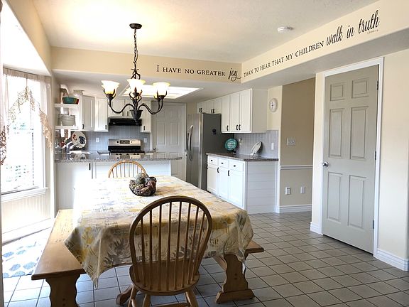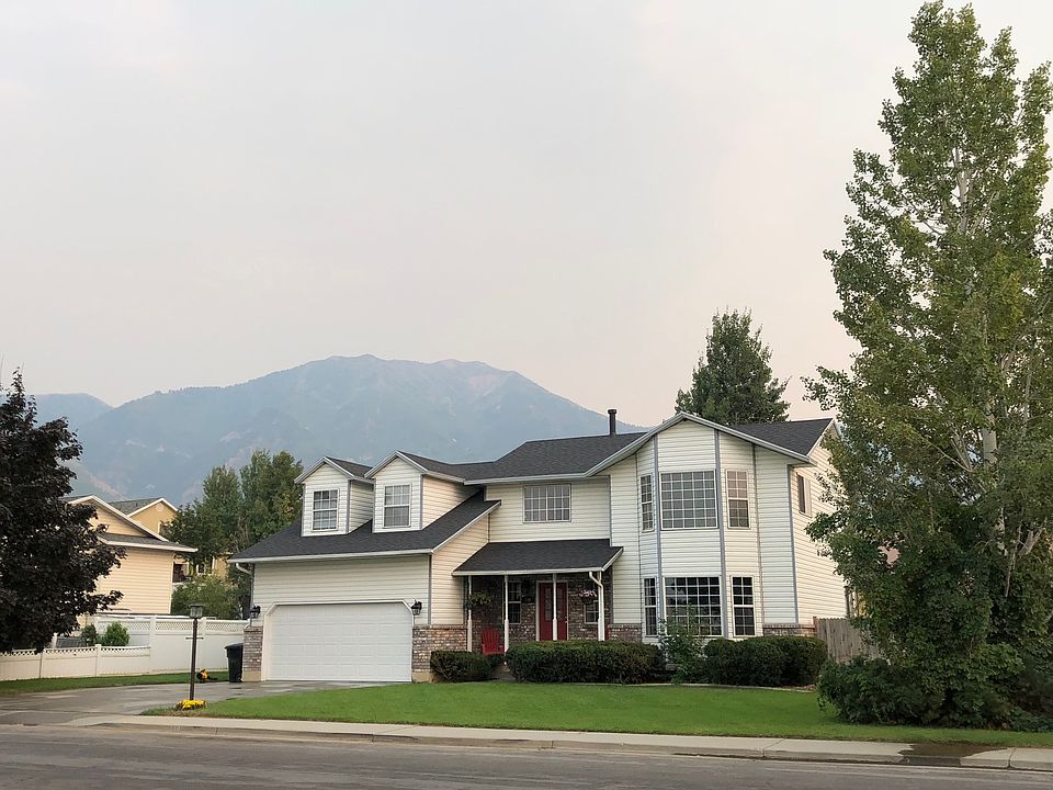 This is a wonderful family home nestle in quiet highly desirable neighborhood. Established lawn and garden spot, the backyard is fenced trees are mature. Inviting front porch. In-ground trampoline for the kids. Featuring: 1/4 acre 3550 sq. ft. -100% finished NEW FURNACE NEW ROOF NEW GARAGE DOOR NEW KITCHEN NEW DISHWASHER NEW PAINT NEW LAMINATE FLOORING NEW HOT WATER HEATER Open kitchen, dining and family room Formal living room Home theater Exercise space Food room 5 large bedrooms including a Giant master bedroom with huge walk-in closet, private deck an en suite with garden tub Laundry room Walk-in pantry 3 1/2 baths, Tons of storage Finished double car garage Central Vacuum RV pad In-ground trampoline TEXT 801.360.1148 for a showing NOT interested in listing with an agent, so please don't ask.