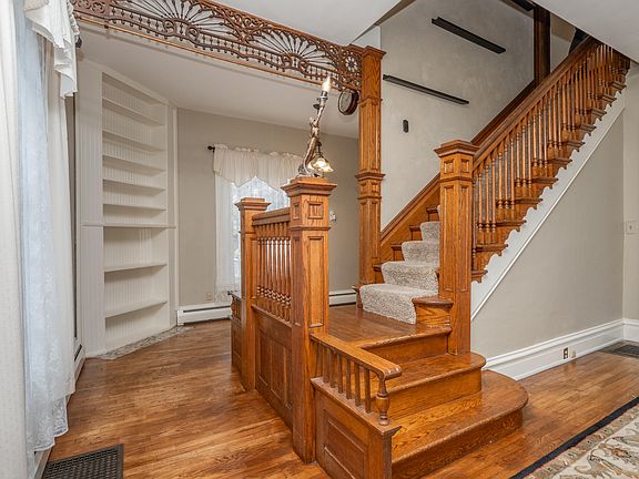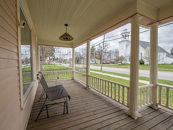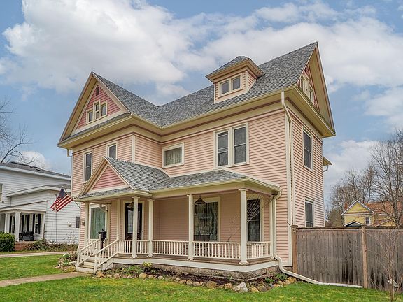 Charming 1870's historic home in the heart of Downtown Plainwell, well preserved and full of beautiful woodwork and character. Exterior of the home features a fresh vibrant paint job, new roof, fenced back yard, elegant front and side porches and a large 2 story carriage house. The interior main floor features an updated kitchen with solid surface counters, farm sink and stainless appliances. Beautiful hardwood floors flow throughout the expansive main floor, accompanied by the tall 10' ceilings. Large formal dining room, living room with a charming original fireplace, additional family room with a unique double stairway with breathtaking woodwork, and a study area with built in safe. Upper level features a large primary bedroom with walk-in closet, 2 additional large bedrooms with Adjoining closets, and an updated full bath with clawfoot tub and laundry. Many updates including newer windows, newer boiler, insulated walls, plus the majority of the siding was resurfaced prior to the recent paint job. Convenient location walkable to downtown shops and restaurants, parks, library and Plainwell Ice Cream!. Call today for a private showing.