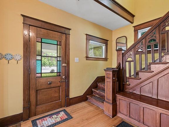Nice 1920's three bedroom with two full baths home with original woodwork, pocket doors, hardwood floors, newer windows, and updated wiring. Beautiful stained glass windows, built-in cabinets and seating, two car garage and storage shed in nice condition. All appliances including the washer and dryer stay.