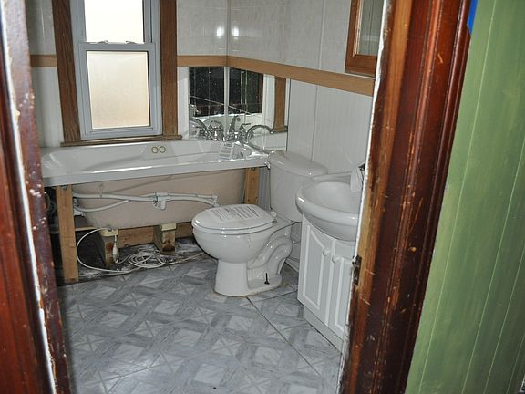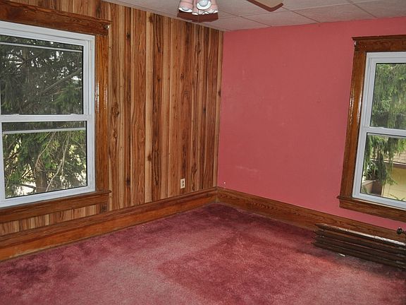 Exterior Features:Wood frame two story house beige siding in good shape with brown trim.1st and 2nd new replacement windows.Roof look to be in fair shape.Foundation looks solid.No garage.Soffits and eaves are intact.Front porch is weak.Back stairs a couple are rotten.................................................... Econohomes has purchased a title policy for this propertyInterior Features:1st floor living room and dinning room have dividers that slid out of the walls.Floors are wood,walls are in good shape.Kitchen is a good size.cabinets are in fair condition,stove and sink are present.2nd fl.Bed rooms some walls are paneled some are not.red and brown mixed carpet in 2 wood floors in the other.Walls are plaster and lath.Bath room Whirlpool tub sink and toilet present. Furnace and hot water tank present condition is unknown