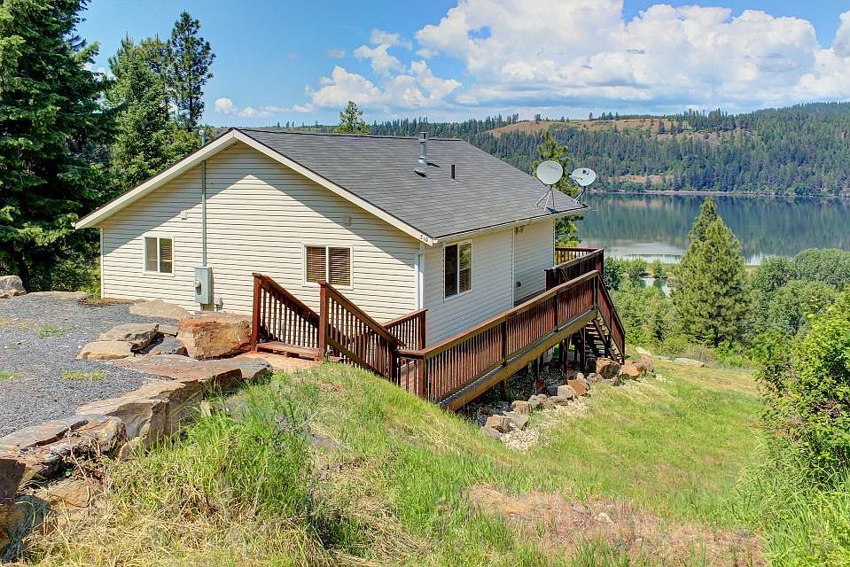 This wonderful pet-friendly and two-bedroom Harrison vacation rental boasts amazing views of Lake Coeur d'Alene (as well as the Coeur d'Alene River), privacy, and a laid-back, rustic charm for a memorable family getaway!Ideal for year-round vacations, in winter you'll also be about 45 miles from Silver Mountain Resort in Kellogg offering the world's longest gondola ride, an indoor water park, and miles of alpine runs!All on one level, this getaway has hardwood floors, a full kitchen with all major appliances, WiFi, and a spacious outdoor deck, including a gas grill. The home is inviting with great natural lighting, a cozy fireplace, and hardwood furniture. Fry up fish caught fresh from the lake for dinner around the four person table or serve meals on the go at the breakfast bar.
