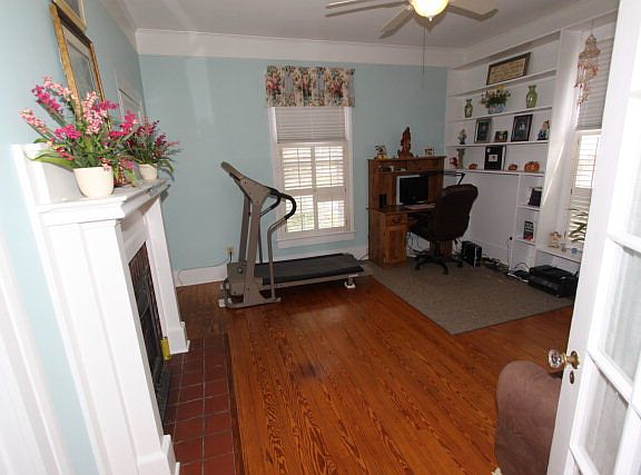 2 story home with large formal areas downstairs with hardwood flrs.,9+ ceilings and crown moulding.Eat-in Kitchen that features a lovely cupboard that matches the cabinets.All appliances remain plus the washer/dryer.There is an utility room as well as a laundry room and pantry.Upstairs are 3 large bedrooms and 2 large baths with ample closets.The den/office downstairs could be a 4th bedroom.