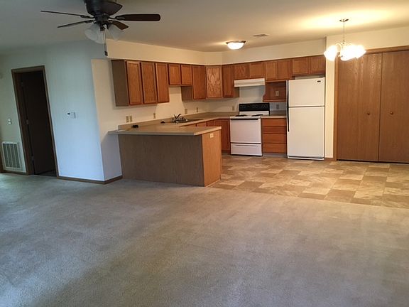Lake Mills, WI - Apartment Building Available July 2017 Beautiful second floor 3 bedroom/ 1 bath condo. Den area off living room. Vaulted ceilings, large kitchen with breakfast bar. Fireplace. Gas heat/central AC. Oversized 2 car attached garage. Cat Only $250/$50 AWESOME LOCATION! Johnson & Hellekson Real Estate, LLC