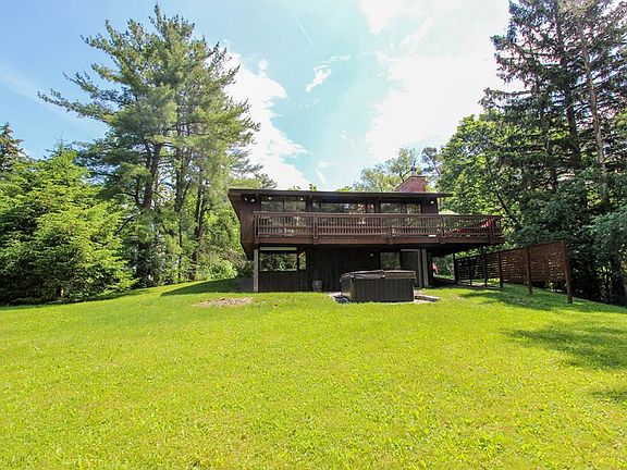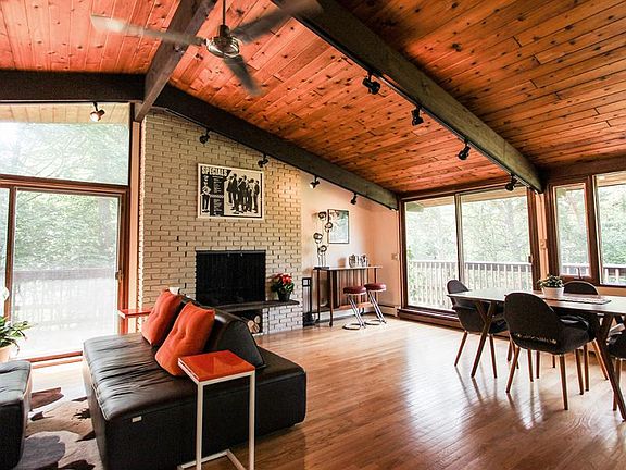 A rare find in Cayuga Heights. 2 BR, 2 Bath architect-designed TRUE Mid-Century Modern. This is a real WOW house â thoughtfully designed to catch morning and afternoon light and sunset views. Totally private fenced yard. Open concept. Walls of glass. Vaulted, beamed ceilings. Fireplace. Hardwood Floors. Wrap-around Deck is a true extension of the house with multiple access points â fire up the grill! Kitchen features stainless appliances, solid surface counters and original custom cabinets. Main Level Master Suite. Den. NEW Hot Tub! New 30 Year Roof. Walk to Community Corners & Cornell.