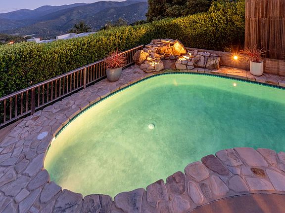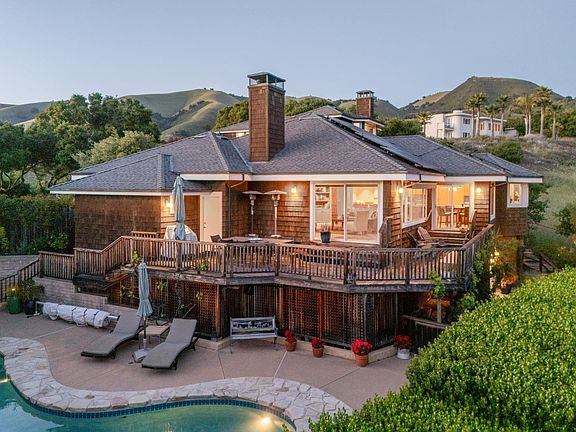 Enjoy a taste of California in this coastal style resort-like home, with dramatic views. Enter and WOW, the soaring spaces and openness pull you directly to the panoramic view of the hills of Carmel Valley. Now turn around and take in the beautiful space youve entered. The warm wood ceiling and floors, open kitchen and breakfast area, living area with fireplace, built-in cabinetry, and glass doors accessing the wrap-around view deck overlooking the private lower patio and pool with waterfall. Also find a stylish dining room and powder room. Two staircases are behind you. The first leads to two light-filled bedrooms and a bath. The second takes you to the very private primary suite with spa like bath, walk-in closet, fireplace, plenty of windows and generous space. The lower level is finished with a separate entrance, currently an inviting guest suite. You will also find: solar, 2 car garage, EV charger, storage room, fenced outdoor area with firepit and a lush garden with shade trees.