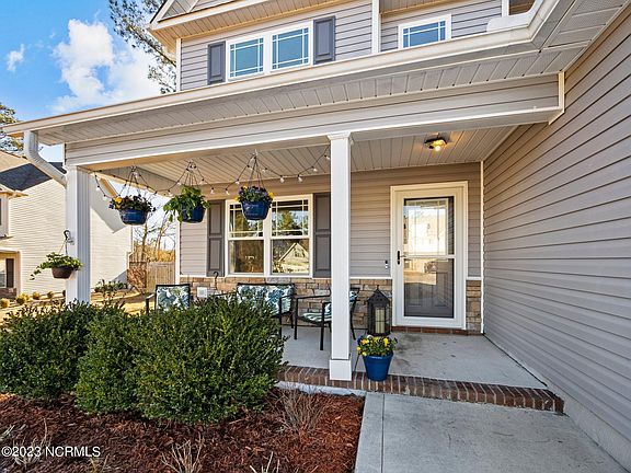 Welcome to Tall Pines of New River! This two-story home sits perfectly on a cul-de-sac, outside of the Jacksonville city limits. The stone accents, landscaping, and covered front porch makes the curb appeal quite charming. Upon entering the home you will find the living room straight ahead, garage access and coat closet to the right, and flex room to the left. The flex room features ornamental molding and chair rails. The owner's currently use this as a dining room but it can be used as an office, sitting area, or anything you desire. The flex room leads into the kitchen area and half bath area. In the kitchen you will find beautiful dark cabinetry, stainless steel appliances and a kitchen island. The kitchen flows directly into the living room, which is adorned with a lovely electric fireplace. From the living room, is the stair case that leads to the second level. Downstairs there is luxury vinyl planking throughout, upstairs there is carpeting in the hallways and bedrooms. Upstairs you will find three bedrooms. In the master suite you will find trey ceilings and walk-in closet . The master bath suite features dual vanities, garden tub, walk-in shower, and a completed BONUS ROOM accessible through the walk-in closet. The bonus room can be used as a media room, den or even an additional closet! The two other bedrooms on the second floor are a good size and the shared bath has dual vanities as well. Outside you will find a large back yard, that is fully fenced with a storage shed! This location can be considered convenient! You are very close to Onslow Pines Park, New River Air Station, grocery and shopping. The beach and airport area are a reasonable drive as well. This home is also outside of the city limits! *Home previously on hold status*