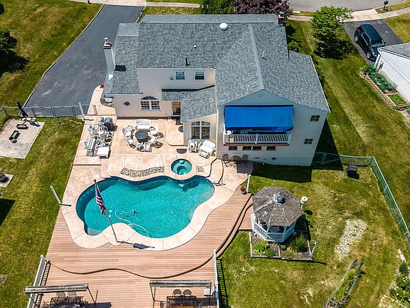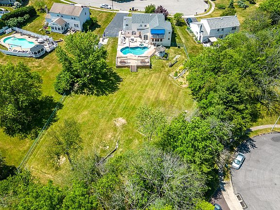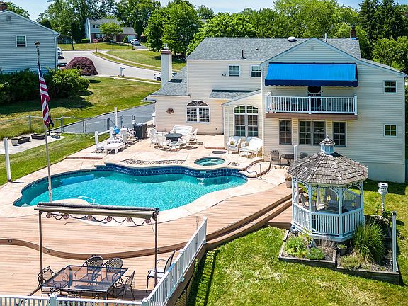 Welcome to this beautiful well cared for home with an oasis backyard including an inground pool. Located in a quaint neighborhood on a Cul-de sac with picturesque views! This 5 bedroom 3 1/2 bath home features 2 primary suites, abundance of hardwood floors and wainscoting throughout the home. Relax on the covered front porch! You will love the open floor plan as you enjoy living in this spacious home. You will enjoy cooking in the gourmet kitchen with a large island. The family room features a gas fireplace, views of the pool and a built -in bar. The dining room will entertain your large family gatherings. The living room has a wall of windows to view the beautiful backyard. The laundry room has built-ins, washer, dryer and a sink. The powder room completes this level. This home has 2 master suites both with walk in closets and updated bathrooms. One suite has a deck so you can enjoy the backyard views. Three additional bedrooms all with ceiling fans and large closets utilize the updated hall bathroom. There is a finished basement area with an office off to the side and a storage area. The 2- car oversized attached garage has a refrigerator, work bench, built-in shelves and cabinets. For additional storage space there are pulldown steps to an attic. Have fun in the inground heated pool with plenty of decking and patios. The pool is 5' deep and the sellers will leave all the pool equipment. The gazebo overlooks the pool and the spacious picturesque yard! This home has so much to offer including a new roof, newer heater and air conditioning units, (2 zones for both) and a newer pool filter. Please enjoy the video and photos to get the real feel of this beautiful home. Make your appointment today!