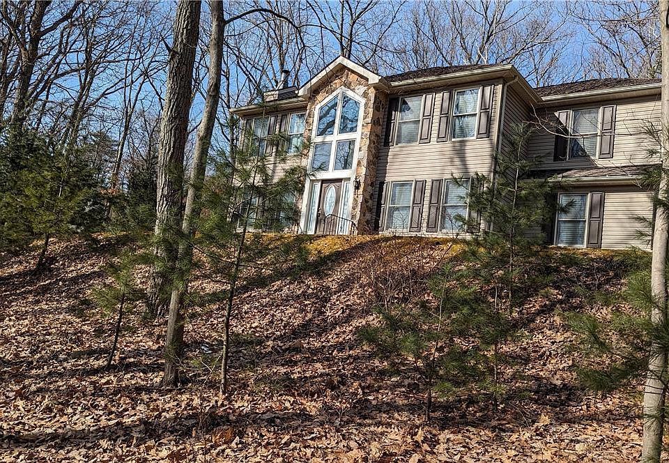 Stone & vinyl home with a great view in Blue Mtn Lake Estates * Oak Hardwood Floors in foyer and Living Room * Kitchen with cherry cabinets, granite counters, ceramic tile, stainless appliances * 2 story foyer accented with oak curved banister * stone wood burning fireplace in living rm * central air* master bath with whirlpool tub with ceramic tile surround and walk in shower * 2 Car Garage* Great Location only 3 Miles to I-80, Hospital & University * Community Pools, 34 Acre Lake, Boating, Lighted Tennis Courts, Basketball, Water Spray Park,
